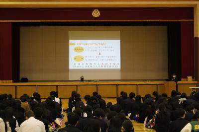 松音塾(1・2年生)対象に、標記の内容について進路指導主事 村井先生が説明を