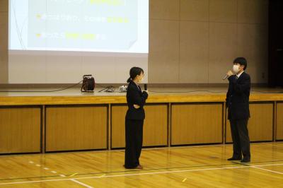 教室の終わりには、本校生徒3名が薬物を勧められたときの断り方を白山