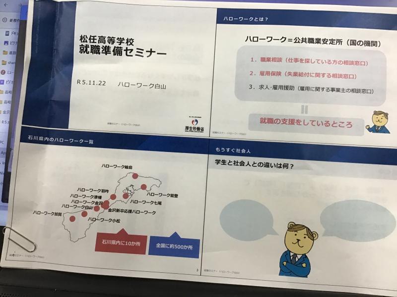 先週に引き続き、高校生の就職準備講座を実施いたしました。ハローワークの担当者からは