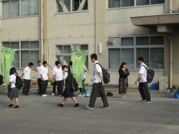 PTA役員、生活指導委員が加わって、9月20日(水)~22日(金)に、「第4回あいさつ運動」が行われました。また、9月22日(金)は県下一斉の「グッドマナーキャンペーン」の指導も加えて行われました。