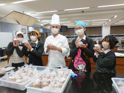 写真は「圓八」さんと「スーパースイーツ製菓専門学校」さんのコラボによる「あんころデニッシュ」の最後の仕上げ作業をお手伝いしているところです。すごくおいしいパンができあがりました!!