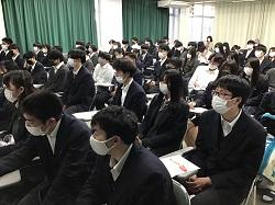 生徒たちは、講師の方のお話しを真剣な表情で聞いていました。特に自分たちと近い年代の