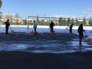 久しぶりにまとまった雪が積もりました。教員有志が生徒玄関の雪すかし(石川の方言)をしてくれました。