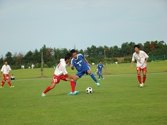 後半10分過ぎに、中央突破した大友がGKの頭を越えるループシュートで、待望の1点を先取しました。またその後、右サイドを崩しセンタリングを受けた大友が落ち着いて2点目を相手ゴールに流し込みました。