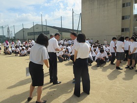 終業式のあと、退任式と離任式が行われました。離任式では、舟元先生と垣内先生が退任の挨拶をされました。退任後は、お二人とも再任用で次の職場で教壇に立たれるということで、お二人の先生の今後のご活躍を祈念したいと思います。
