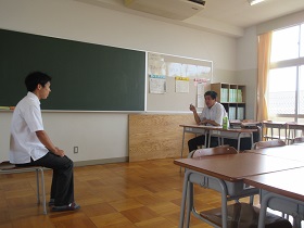 8月1日・2日の面接練習を経て、3日に校内模擬面接を実施しました。校長先生をはじめ、多数の先生が面接官となって志望動機や学校生活について質問がありました。生徒は緊張した面持ちで、真剣に面接に取り組んでいました。生徒のみなさん、第1希望の合格に向けて暑い夏を乗り切って頑張ってください。