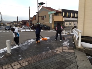 基礎トレーニングを兼ねて、学校周辺を少しだけ雪かきさせていただきました。