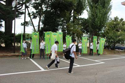 グッドマナー・キャンペーンを9月19日(木)朝、松任駅改札口前にて行いました。白山市、防犯協会、翠星高校と合同で行いました。本校は生徒会役員とPTA生活指導委員会の委員が参加し、あいさつの声かけやチラシを配りました。