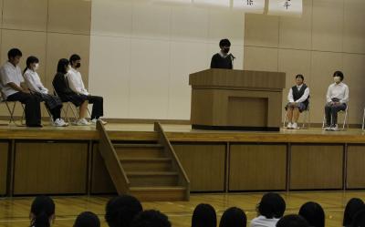 役職に就いたら、どんな学校にしていきたいか、演説していました。