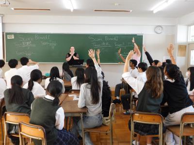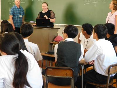 ペンリス高校の生徒12人、教員2人のみなさんが松任高校に来校しました。