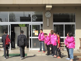 あいさつ運動1 投稿日時 : 2018/04/24 総務課 生徒会の「あいさつ運動」が4月16日(月)より始まり、18日(水)から20日(金)まで、PTAのみなさんも加わって行われました。 徳田PTA会長をはじめ、朝早くから役員の方々が参加してくださいました。おつかれさまでした。 Tweet