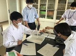 生物探究の実験 投稿日時 : 2022/06/10 総務課 6/10(金)生物探究(3年普通科)の授業で、酵素の働く条件を考察する実験が行われました。 生の肝臓片を材料として、「肝臓片を加熱するとどうなるのか?」、「どんな基質にも反応するのか?」、 「無機触媒との違いは何なのか?」などを実験を通して考察します。 最初にスプレッドシートに実験結果の予想を入力しましたが、予想通りにならなかった実験に対して、 みんな真剣にその理由を考えていました。 (予想通りですが、しばらくはレバーを食べたくないという感想が多かったです。) Tweet