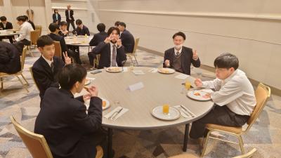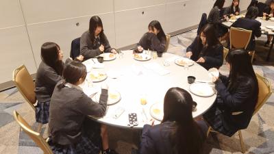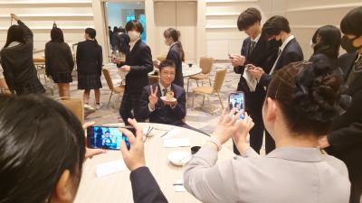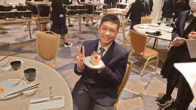 修学旅行中に誕生日があった生徒にサプライズケーキを用意し、みんなでお祝いしました。