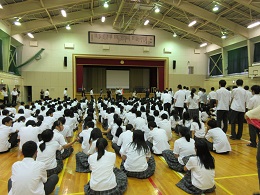 生徒は暑い中、体育館で汗を流しながら一生懸命頑張りました。