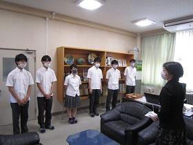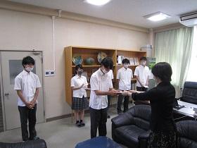 本日13時より校長室において北信越総体の激励会が行われました。フェンシング部・自転車競技部・弓道部の代表の生徒が校長先生から激励の言葉をいただきました。なお今週末の土曜・日曜日に、フェンシングは松任高校体育館、自転車競技は松本市美鈴湖自転車競技場、弓道は石川県立武道館弓道場でそれぞれ大会が行われます。みなさまの心からの応援をお願いします。