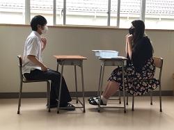 6/17(木)5限目、期末テストが近いこともあり、英語表現の授業で個別のスピーキングテストが行われていました。ALTのエレクトラさんと会話し評価されます。みんな自信を持ってしっかりと話していました。