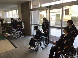 本校の総合学科の授業の1つに介護福祉基礎があります。今日は車椅子で段差を上り下りする実習をしていました。将来介護の仕事を希望している生徒もいます。介護が必要な方が安心できる車椅子操作を身に付けようと真剣に取り組んでいました。