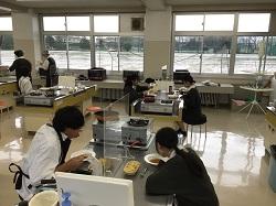 2年生のフードデザインの授業では、学んだ食品の調理性を生かした実習を行っています。12/14(水)のメニューは、マカロニグラタンとコンソメスープ。出来上がりは美味しそうでしたが、コショウを入れすぎたグループはスープの色が透き通らず、思わず「辛!」