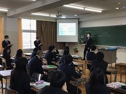今年度本校は、県の英語教育充実事業のモデル校になっています。12/15(木) 第2回の公開研究授業を行いました。1年生の英語コミュニケーションⅠで、内容は人の生活を豊かにするロボットについて考え、英語で提案する単元で、今回は本文から「How can this robot help people?」を読み取り、「What kind of robot do you want to have?」について自分のアイデアを述べる授業でした。大勢の参観者がいましたが、生徒はペア活動等でしっかりと伝え合っていました。