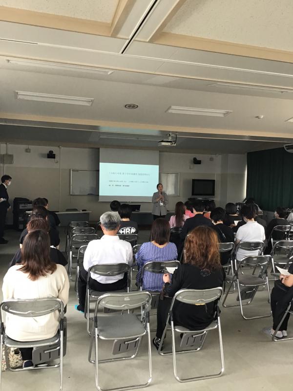 本校生徒が大人に混ざって懸命に話を聞き、メモを取っていました。時に生徒が発言する場面があり、