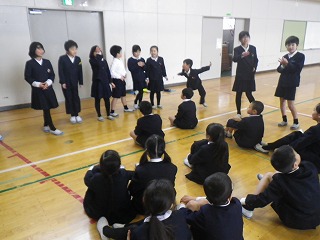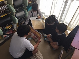 高学年が低学年に対して本の読み聞かせをしました。