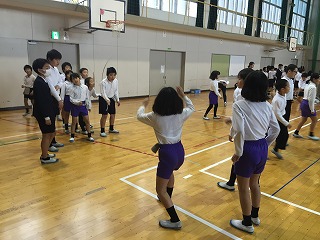 高学年が声かけしながら取り組む姿が見られま