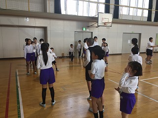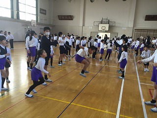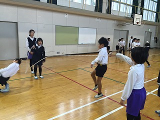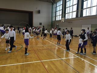 体育委員会の企画でたてわり班で8の字飛び