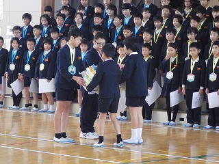 卒業生のみなさん、中学校でもがんばってください。職員一同応援しています!
