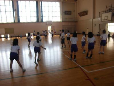 体育館はとても暑かったのですが、水分補給をしっかりしてみんな一生懸命活動していました。