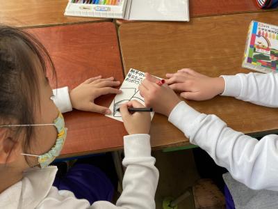 また、年賀状を書き終えた後は、コロナの影響でなかなか交流ができていなかった、縦割り班での遊びも
