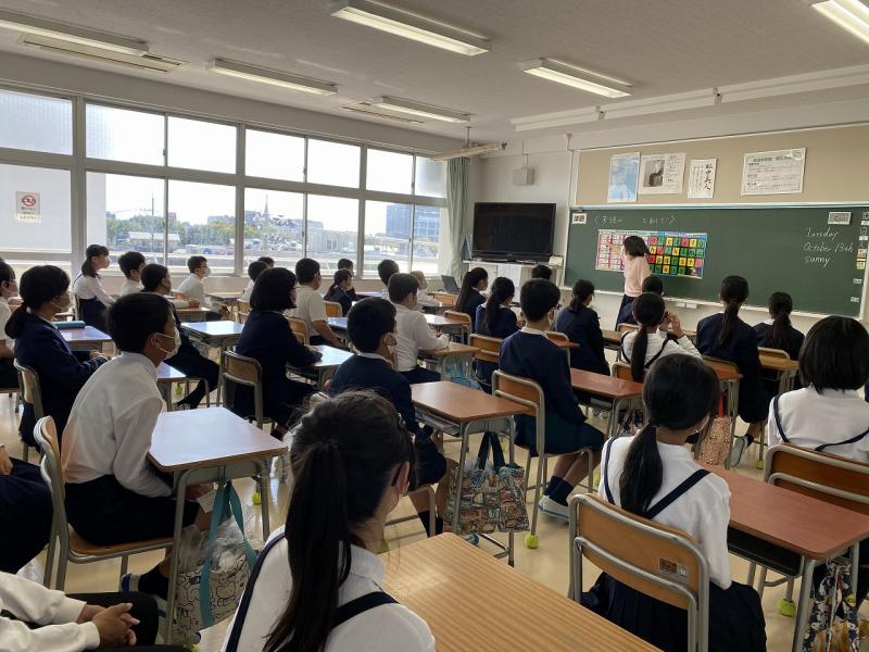 1組は「数学」2組は「英語」3組は「美術」の授業体験をし、楽しみながらも中学校の授業のスピーディーさに驚いているようでした。