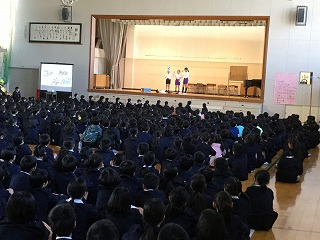 グループごとに伝えたいテーマを考えることはもちろんのこと、劇では自分たちでシナリオ作り、プレゼンでは自分たちでパワーポイント作成、模造紙では自分たちでレイアウト構成を考えるなど、限られた時間の中でしたが、国語や情報の時間など様々な学習で学んできた技をフル活用して取り組む姿を見ることができました。