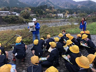 一覧へ ジオ遠足に行ってきました。 投稿日時: 2018/11/28 先生 11月19日(月)に社会の学習「きょう土のはってんにつくす」で、七か用水について勉強をしることもあり、ジオ遠足に出かけました。 七か用水を開発した枝権兵衛が、どれだけ苦労して七か用水を作ったのか、今はどんな様子に変わっていったのかをしっかりと見てくることができました。やはり、実際に見ることで学習が深まります。