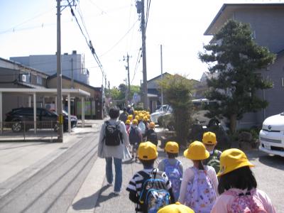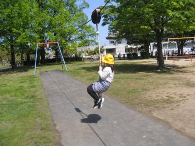 5月15日に遠足で、若宮公園に行きました。子どもたちは、「友達と仲良くする」ことと、「春を見つける」ことを目標に遠足に行きました。公園では、色々な友達と楽しく遊んだり、仲良くお弁当を食べたりすることができました。