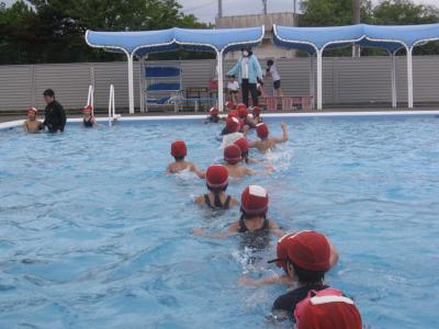 始めてのプールにみんなどきどきしながらも、楽しく入ることができました。