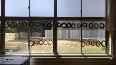 友達や先生に助けてもらいながら、できたリースを見て喜んでいる姿をたくさん見ることができました。
