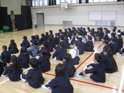 2月は6年を送る会で、くじらぐもの劇とありがとうの花を歌いました。