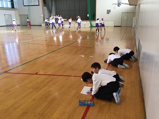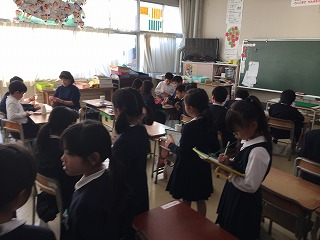1・2年生は体育館前渡り廊下、3・5年生は3階渡り廊下、