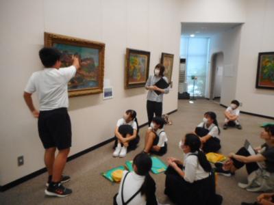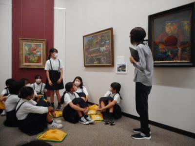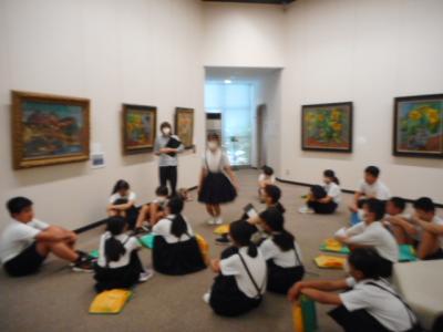 市立中川一政美術館で6年生が対話型鑑賞に取り組みました。「対話による鑑賞授業」は近年注目されている取り組みで、他者の多様な考えに気付き、互いに認め合い、自分の考えを広げる場となります。今日は、2組と3組が取り組みまた。「『おーい!』という声が聞こえる絵はどれですか?」を話し合ったり、1枚の絵について感じたことを話し合ったりするなど、表現力や感性を育む大変面白い授業でした。自分の考えを思い切って表現し、また、友達の意見をうなずきながら傾聴する様子が大変すてきでした。指導員の先生には大変お世話になりました。