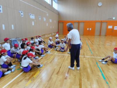 連日発表されている熱中症アラートにより、運動遊びができない日が続いていましたが、今日は比較的穏やかな気候です。体育館からはタグラグビーに興じる子どもたちの歓声が聞こえてきます。子どもたちが元気を取り戻したようでした。作戦を指導する先生も元気いっぱいです。