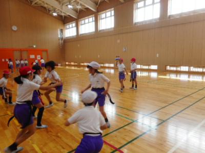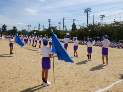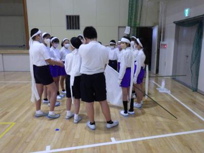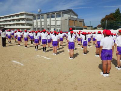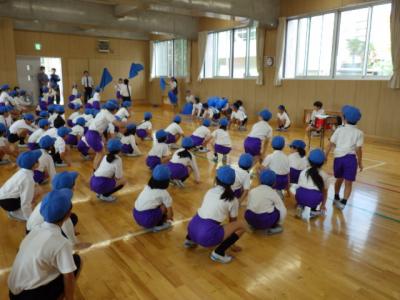 赤白青の3組に分かれ全校の応援練習を行いました。どの組も応援団の6年生の指示で、元気よく練習を行うことができました。このように応援も演技もとても順調です。心配なのは当日の天気だけです。