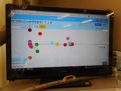 金曜日の5限。この授業で今週は終わりです。学校を回っていると、なかよしでは国語の授業の様子を見ることができました。「やくそく」というかなり長めの物語をすらすら音読しています。「すごいね~」とほめると満面の笑みでした。1年生では各学級で国語や道徳の授業が進められていました。1組は端末で「スカイメニューのポジショニング」というアプリを使って、お手伝いについての自分の様子を表していました。その後の発表ではたくさん手が挙がりました。夏休みが明けて10日ほどが経ちましたが、好調です。