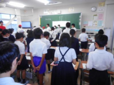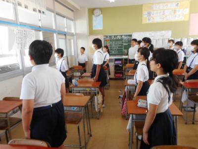 21日は全校登校日です。子どもたちの元気な声を久しぶりに聞くことができました。「元気だった?夏休みを楽しんでいますか?」などと問うと、全ての子どもたちから明るい返事が返ってきました。それぞれの学年では宿題の確認をしたり、夏休みの思い出をスピーチしたりして、久しぶりの友達との時間を楽しんでいました。また、4・5年生では平和についての学習や読み聞かせが行われていました。夏休みはあと一週間ほどですが、2学期のスタートが元気よく切れるように、体調や生活リズムを整えておいてください。