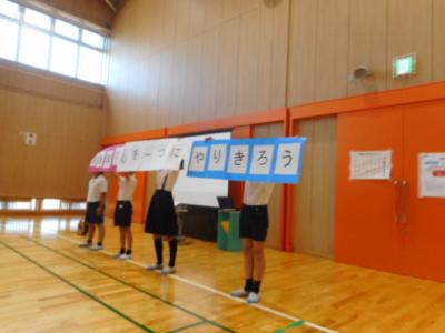 10月の全校朝会・児童集会を行いました。第1体育館が工事のため2部に分けての実施です。児童集会では運動会のスローガンが発表され、赤白青組の応援団の紹介がありました。スローガンは「最後まで 心を一つに やりきろう」と決まりました。10月21日に向け練習・準備が本格化していきます。松小「元気」プロジェクトの10月は「出し切る」がテーマです。