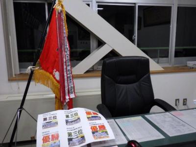 松任若体スーパースターズは松任小学校の子どもたちで組織する学童野球チームです。今日は監督をはじめ選手の皆さんが大会の結果を報告に来てくれました。夏の交流大会の優勝、白山市新人大会の優勝をはじめ、たくさんの大会での健闘ぶりを聞かせていただきました。2つの優勝旗はしばらく校長室で預かることになりました。今後、新人の県大会や6年生の最後の大会が予定されているそうです。練習の成果が発揮できることをお祈りしています。