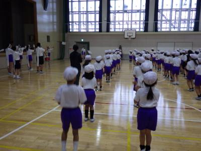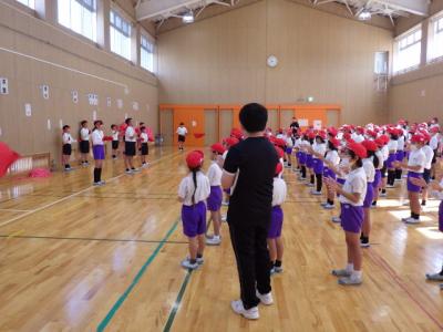 運動会に向け朝の応援練習が始まりました。5、6年生全員が、1~4年全クラスに分かれて赴き、練習をリードします。初日でしたがエールや応援歌などよい声が響いていました。「元気」なムードが高まってきているようです。次回は10日火曜日の予定です。