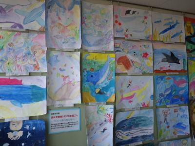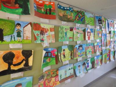 2学期に取り組んだ感想画等の作品を全校一斉に展示しています。各学年ともよく描けています。校内がぱっと明るくなったように感じます。