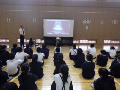 白山市出身のお笑い芸人であるぶんぶんボウルのお二人をお招きし、6年生を対象したSDGsの学習会を行いました。さすがのトーク力と絶妙なコンビネーションで笑いを誘い、クイズやゲームもあり楽しく学ぶことができました。日本では17の目標のうちまだ2つしか達成していないこと、ジェンダー平等の目標では100位以下の評価になっていることなど、意外なことがたくさんありました。質問コーナーでは2人がお笑い芸人という夢を叶えた過程についてもお話を聞くことができました。「好きなことを一生懸命頑張る」力強いメッセージをいただいて終わりました。とよしげさん、マーシーさんありがとうございました。