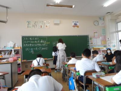 ご存じの方も多いかとは思いますが、学校では「研究授業」といって、先生方の授業力の向上のために授業を参観する機会を設けています。参観後はそれぞれの気付きや意見を交換します。言い換えれば先生方の学び合いです。今日の研究授業は3年1組の「わり算」でした。子どもたちはよく考え、たくさん発表できた授業でした。「研究授業」を通して得られたことを、各先生方の授業に活かしていきたいと思います。