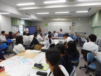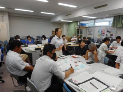 2年生でも研究授業を行いました。算数「水のかさ」の授業です。入れ物にふさわしいかさの単位を選ぶ学習です。先生の工夫があり、子どもたちは最初から最後まで楽しく学習に取り組みました。「mLだと指先サイズ8個分で少ない」「500Lだとあふれちゃう」など、これまでの学びを生かしてその単位が適切な(または不適切な)理由を表現することもできました。先生と子どもで一緒に創り上げたという感じの素敵な授業になりました。